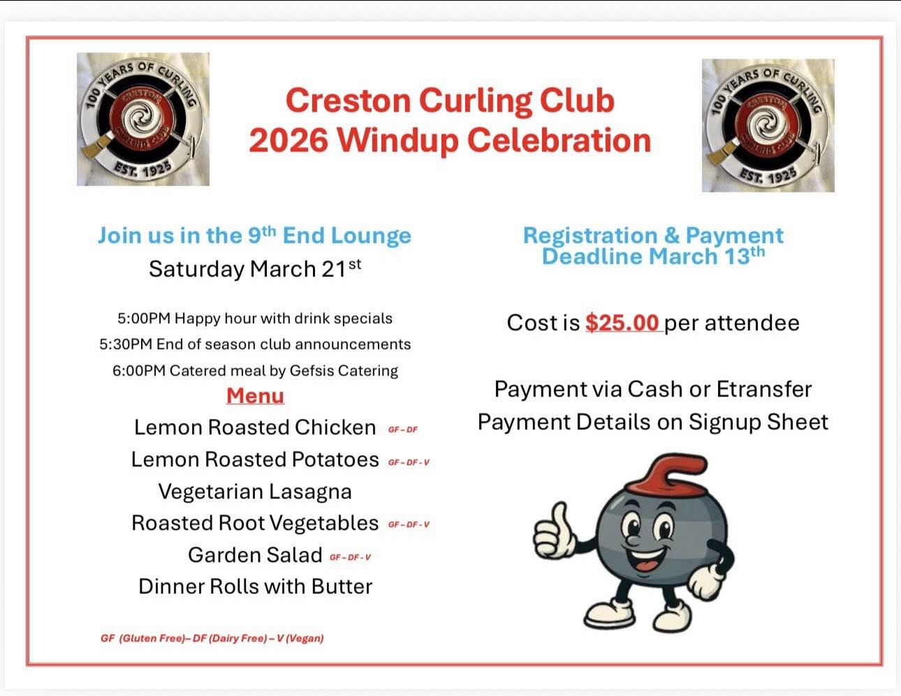 Wishing our Creston Masters Teams luck and good curling as they get ready for the