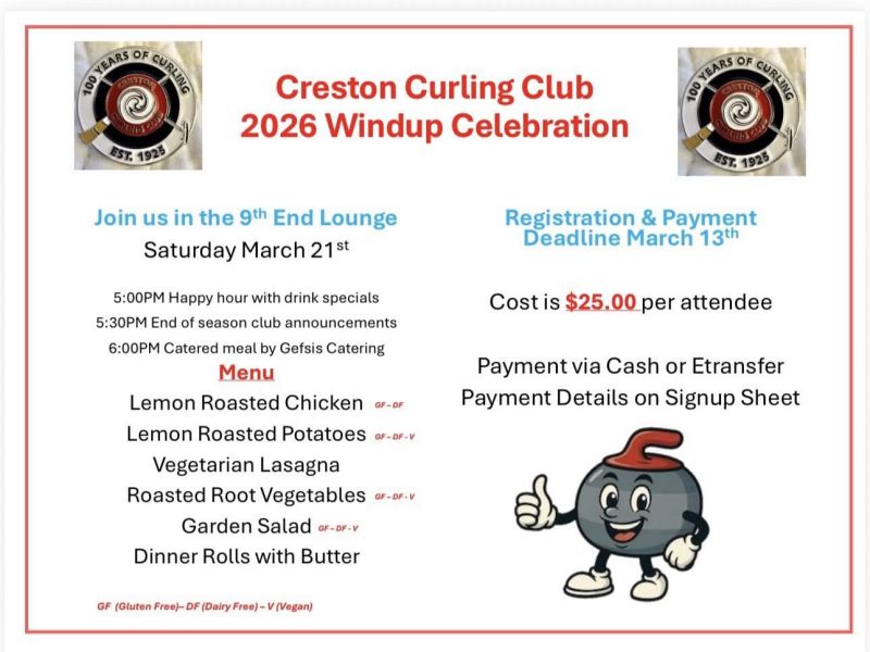 Wishing our Creston Masters Teams luck and good curling as they get ready for the BCMCC (BC Masters Combined Championship) in Chilliwack from March 28-April 2nd.